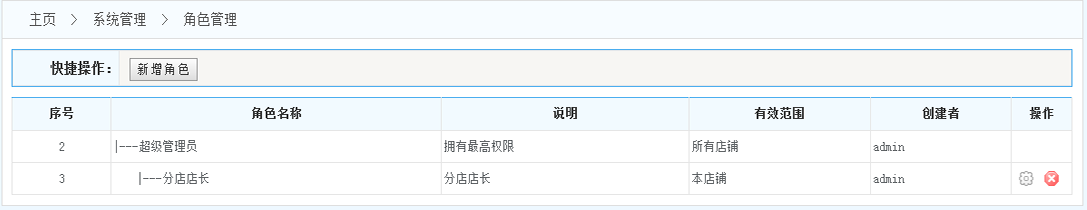 2.角色列表:在角色列表中的最后一欄 可以對角色進(jìn)行進(jìn)行編輯和刪除
