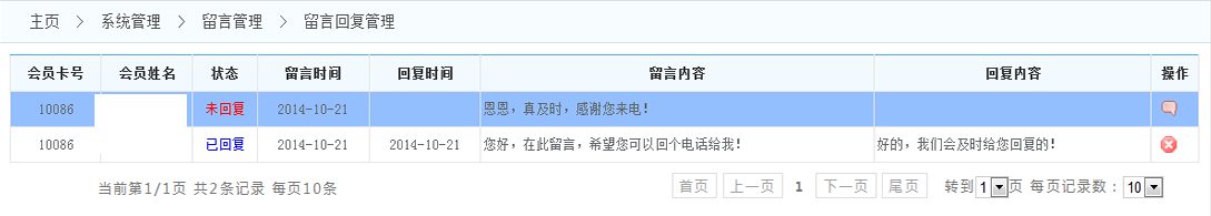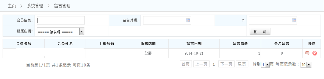1.查詢留言:可以根據(jù)時(shí)間段或者店鋪或者會(huì)員 來(lái)查找留言