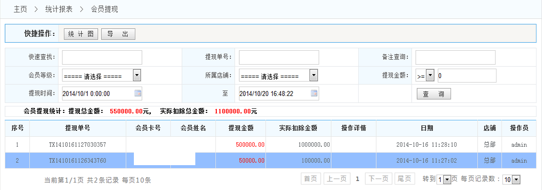 會員提現(xiàn)統(tǒng)計:查看會員賬戶余額提現(xiàn)記錄
