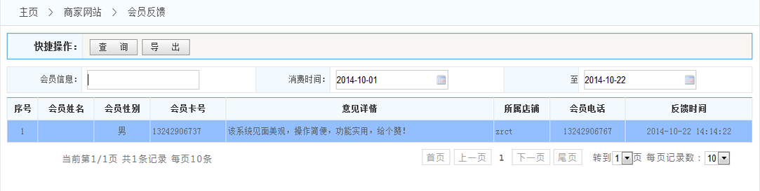2.導(dǎo)出:可以將按條件查詢出來的會(huì)員反饋列表 以Excel形式導(dǎo)出