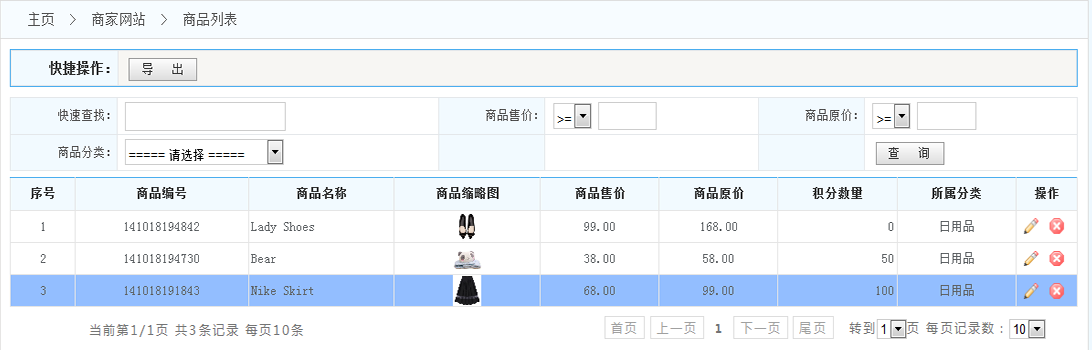 3.列表:在商品列表的操作一欄 可以對(duì)該商品進(jìn)行編輯和刪除