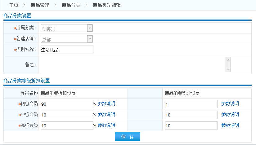 商品分類等級折扣設(shè)置:
