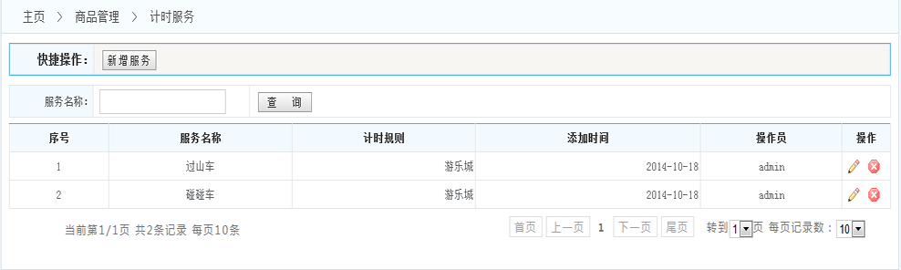 規(guī)則列表:展示系統(tǒng)內(nèi)設(shè)置的所有的服務(wù)項目 (操作一欄 可以對每條規(guī)則進(jìn)行修改和刪除 )