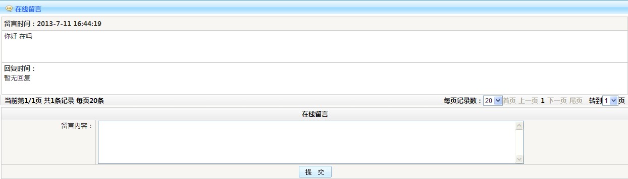 :會(huì)員自助在線給后臺(tái)管理員留言。