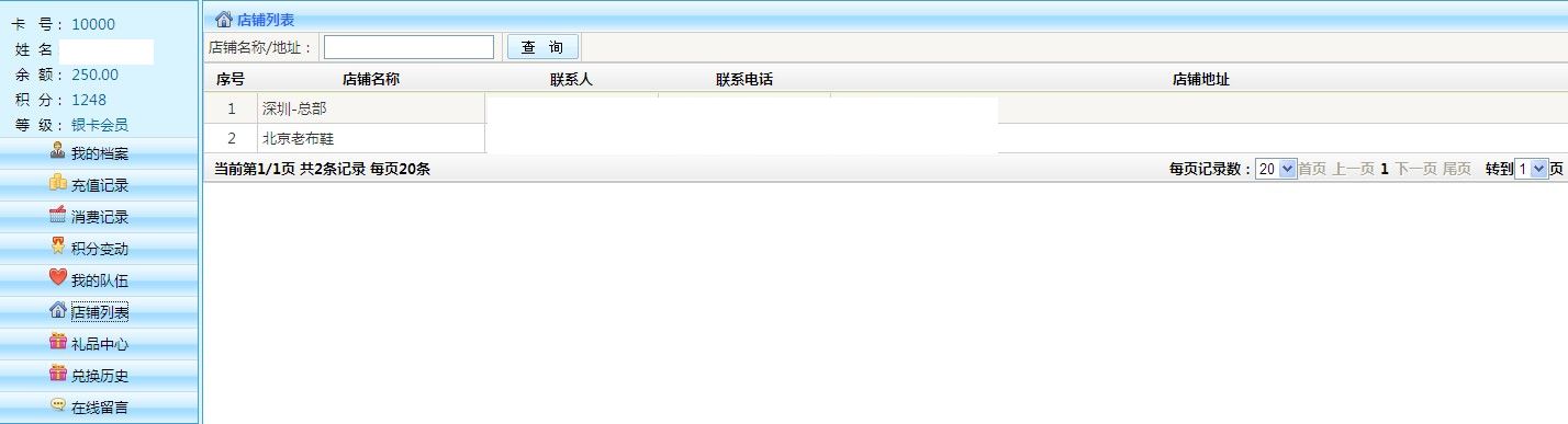 五通一卡通云會(huì)員管理系統(tǒng)店鋪列表