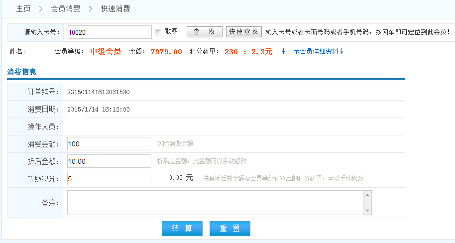 可輸入卡號(hào)或者卡面號(hào)碼或者手機(jī)號(hào)碼,按回車或查找按鈕定位到此會(huì)員!